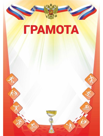 Грамота А4 красная с кубком и гербом РФ, картон 200 гр, ГрамЯРГ-4