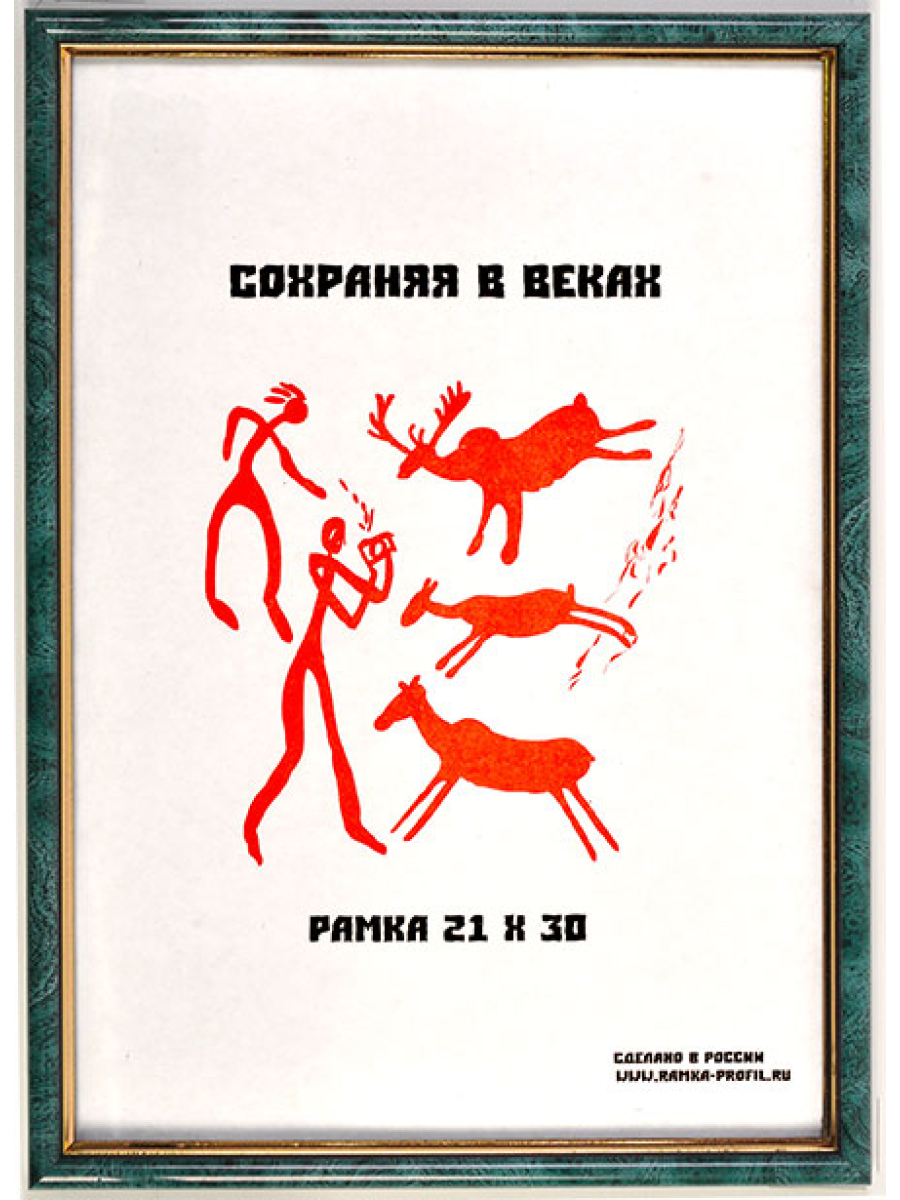 Формат А4 Материал багета- пластик, Материал вставки- стекло минеральное, Ширина багета 21*30, профиль 13,5х14,9 мм.