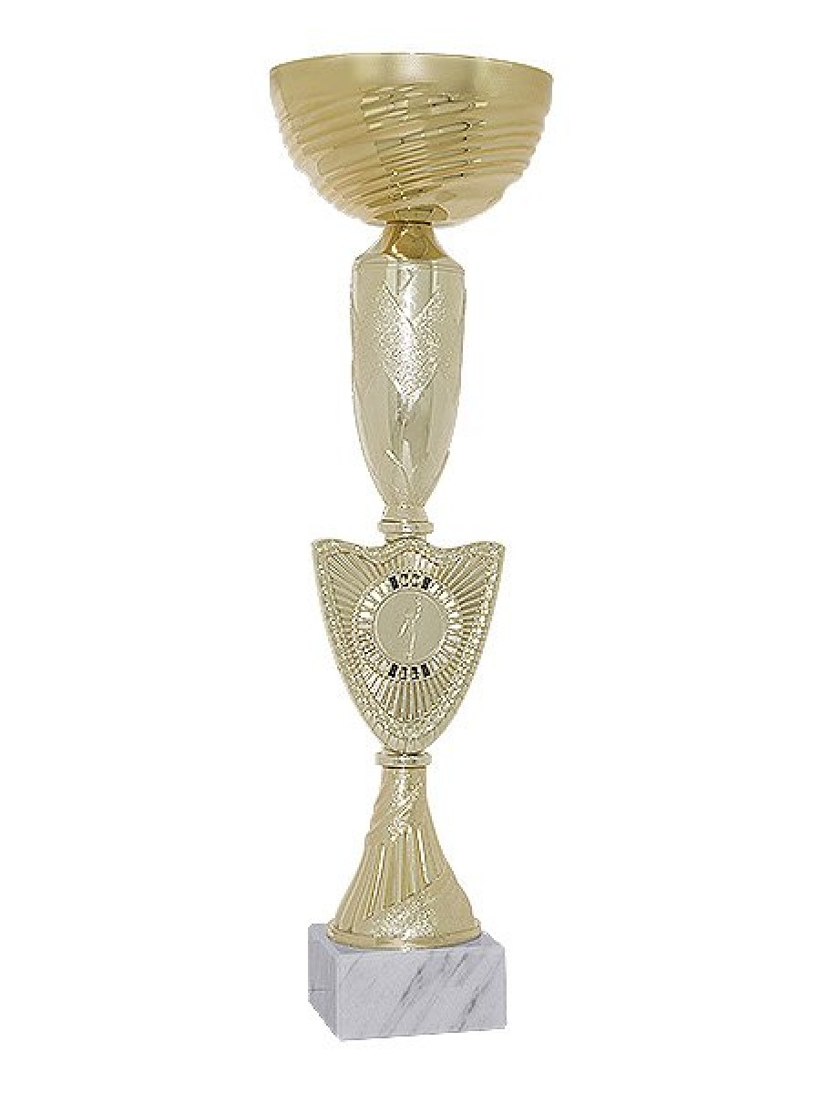 Кубок серии Стандарт. Цвет кубка -"золото". Чаша металлическая. Основание белый мрамор. Основание кубка можно укомплектовать табличкой с логотипом/надписью из металла. Высота 38 см. Размер основания 75*30 мм. Диаметр чаши 120 мм.
