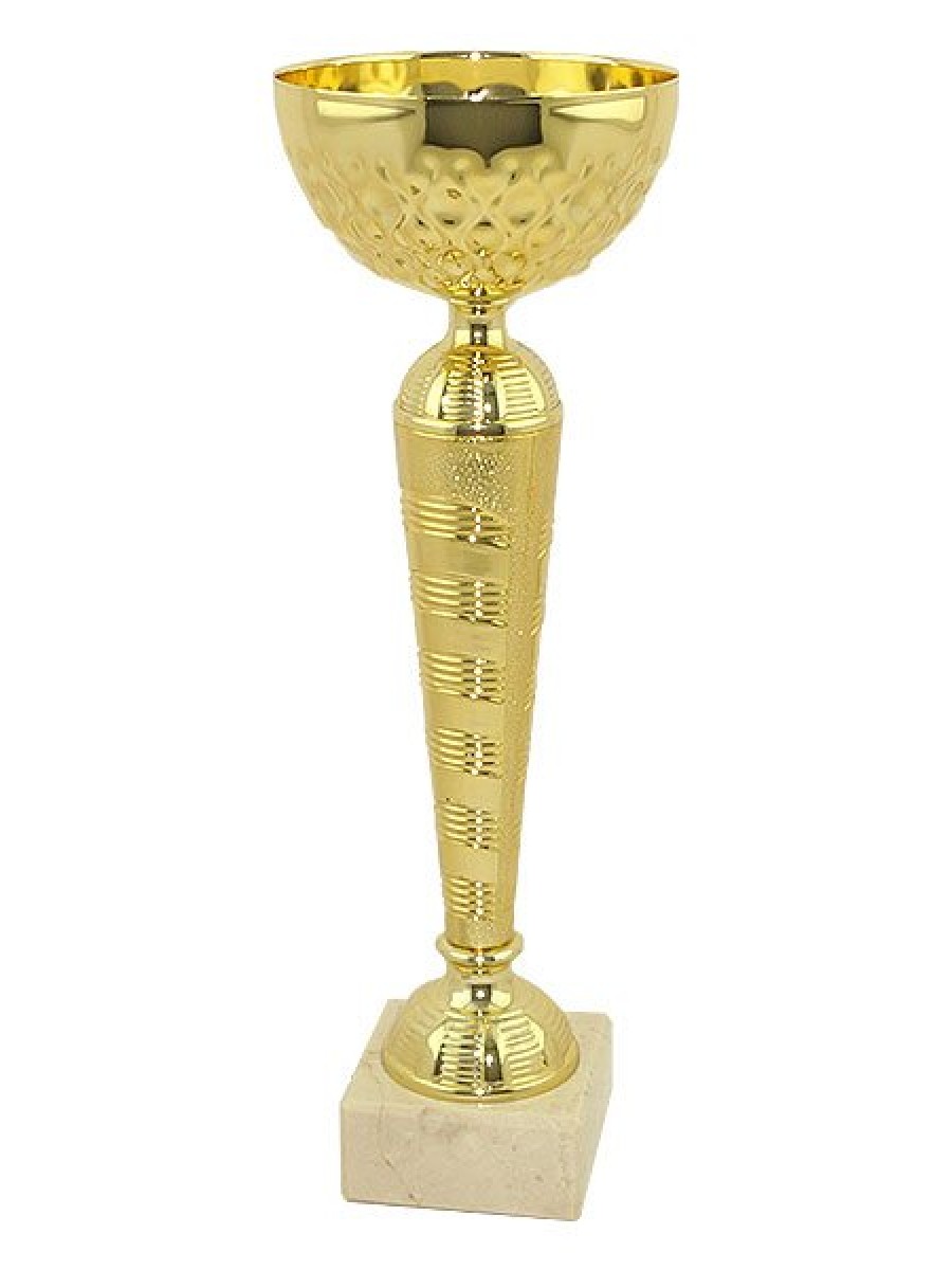 Кубок серии Стандарт. Цвет кубка -"золото". Чаша металлическая. Основание бежевый мрамор. Основание кубка можно укомплектовать табличкой с логотипом/надписью из металла. Высота 34 см. Размер основания 75*30 мм. Диаметр чаши 120 мм.