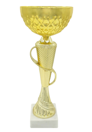 Кубок серии Стандарт. Цвет кубка -"золото". Чаша металлическая. Основание белый мрамор. Основание кубка можно укомплектовать табличкой с логотипом/надписью из металла. Высота 20 см. Размер основания 55*30 мм. Диаметр чаши 80 мм.