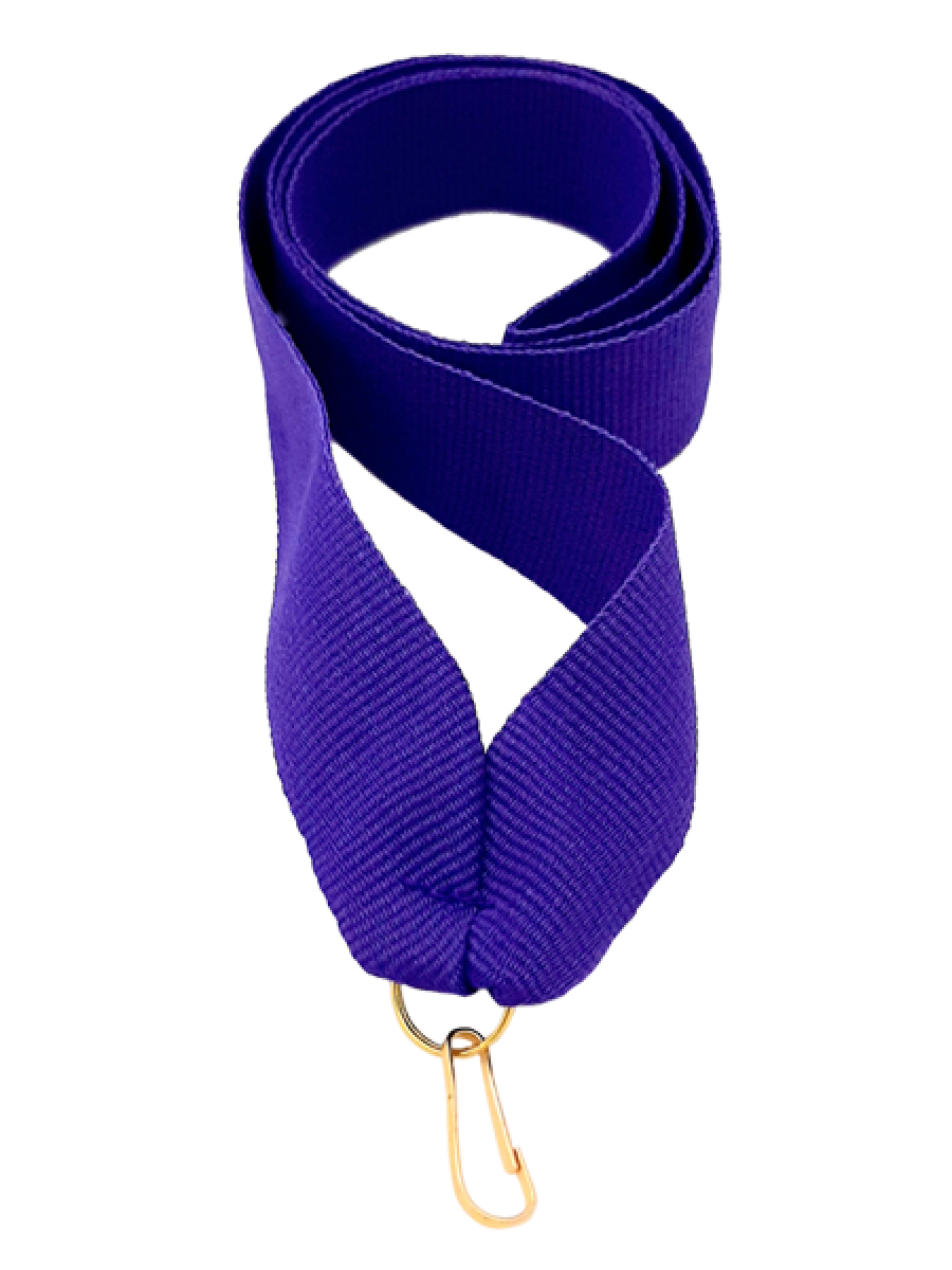 Ширина 22 мм, сшита на металлический карабин с кольцом, материал жаккард, двухсторонняя. Цвет фиолетовый