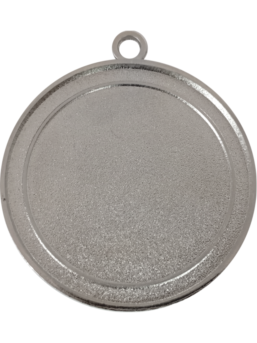 Реверс медали матовый, выполнен технологией пескоструйной обработки. На реверсе выделено место под вкладыш, поднятым полированным металлом в виде канта диаметром 40 мм, для размещения вставки диаметром 40 мм (другой размер вставки не допускается по причине использования стандартных вкладышей).