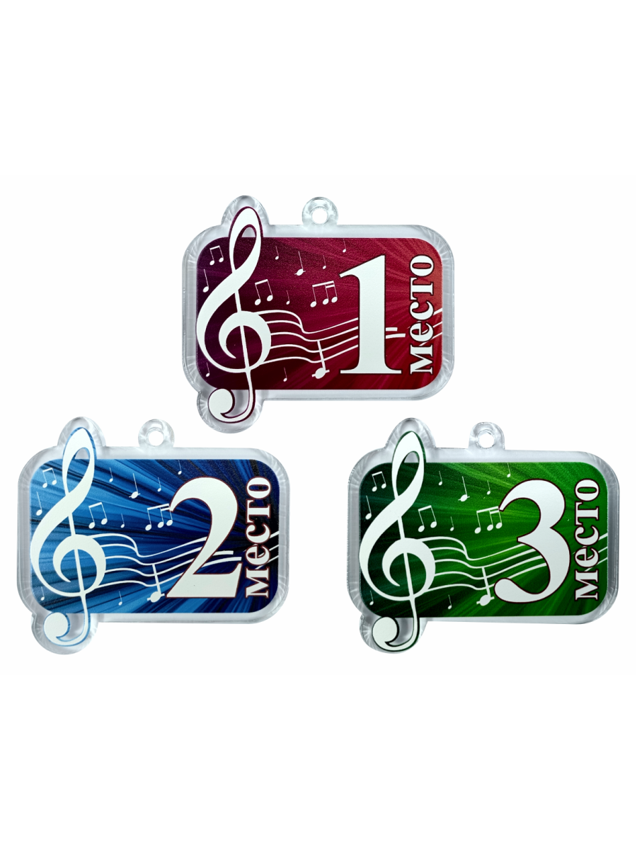 Материал акриловое стекло. Толщина 5 мм. Полноцветная УФ-печать. Размер медали 70*60мм