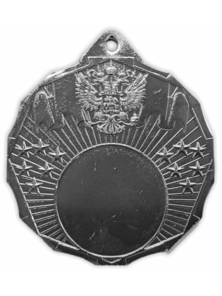 Диаметр 50 мм. Толщина медали 2,5 мм. Медаль изготовлена из металла (железа) методом штамповки. Лицевую сторону медали (аверс) можно укомплектовать эмблемой диаметром 25 мм. Обратную сторону медали (реверс) можно укомплектовать наклейкой или металлическим вкладышем диаметром 46 мм с текстом и рисунком. Имеется возможность укомплектовать медаль лентой. LD110/S
