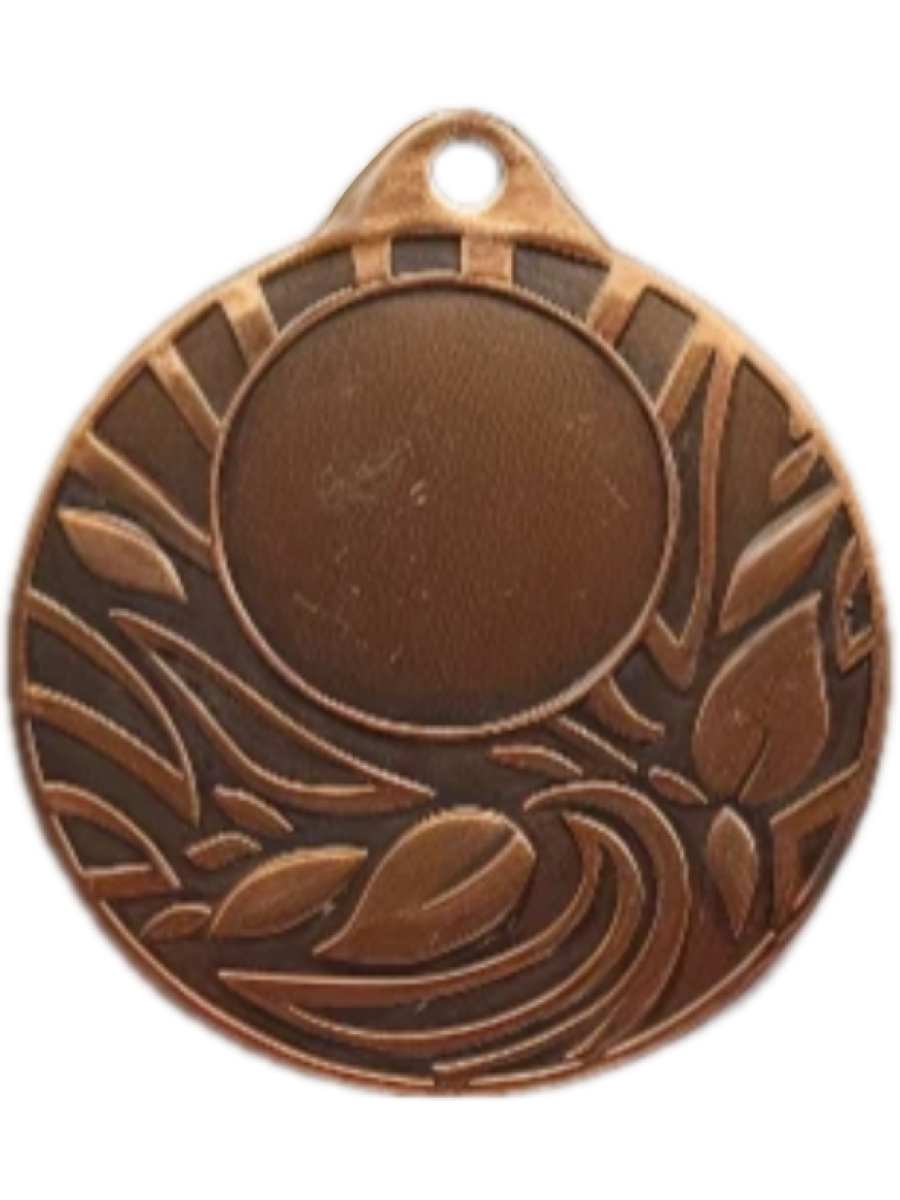 Диаметр 50 мм. Толщина медали 2,5 мм. Медаль изготовлена из металла (железа) методом штамповки. Лицевую сторону медали (аверс) можно укомплектовать эмблемой диаметром 25 мм. Обратную сторону медали (реверс) можно укомплектовать наклейкой или металлическим вкладышем диаметром 46 мм с текстом и рисунком. Имеется возможность укомплектовать медаль лентой. LD112/B