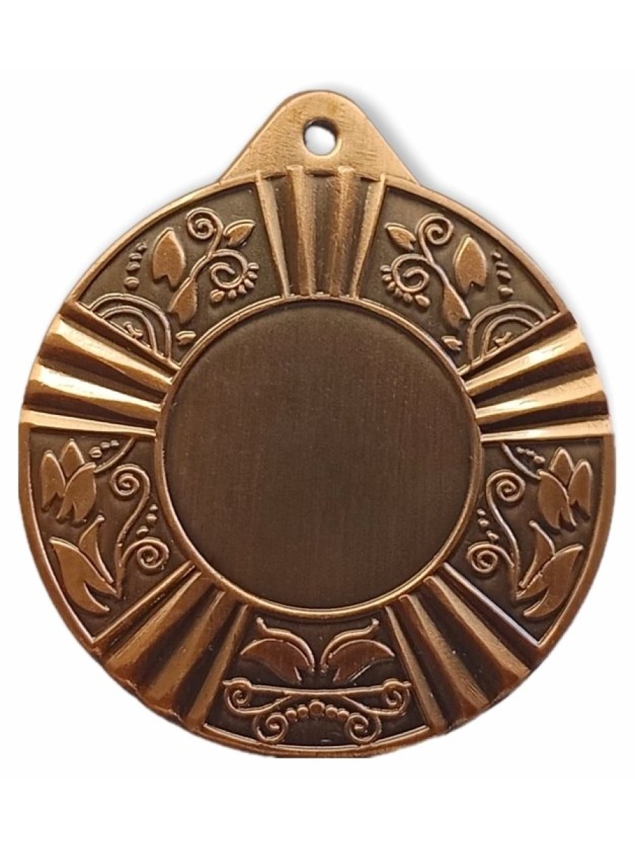 Диаметр 50 мм. Толщина медали 3 мм. Медаль изготовлена из металла (железа) методом штамповки. Лицевую сторону медали (аверс) можно укомплектовать эмблемой диаметром 25 мм. Обратную сторону медали (реверс) можно укомплектовать наклейкой или металлическим вкладышем диаметром 46 мм с текстом и рисунком. Имеется возможность укомплектовать медаль лентой. LD115/B