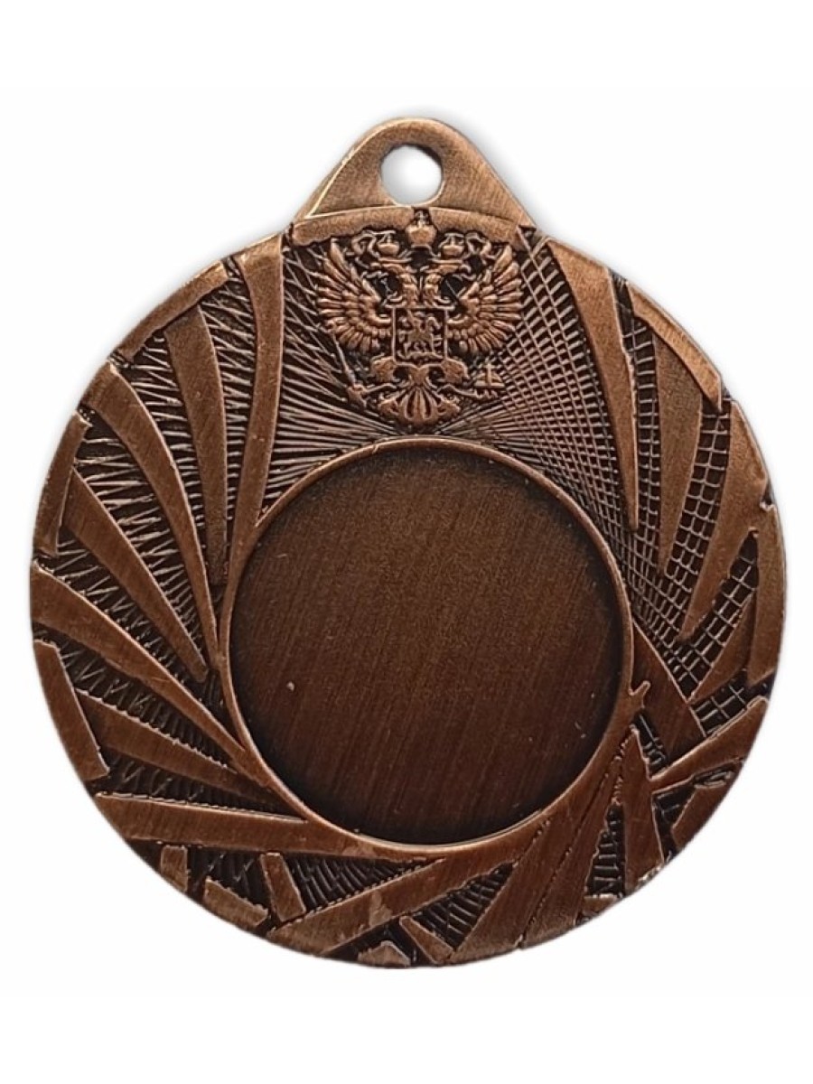 Диаметр 50 мм. Толщина медали 3 мм. Медаль изготовлена из металла (железа) методом штамповки. Лицевую сторону медали (аверс) можно укомплектовать эмблемой диаметром 25 мм. Обратную сторону медали (реверс) можно укомплектовать наклейкой или металлическим вкладышем диаметром 46 мм с текстом и рисунком. Имеется возможность укомплектовать медаль лентой. LD116/B