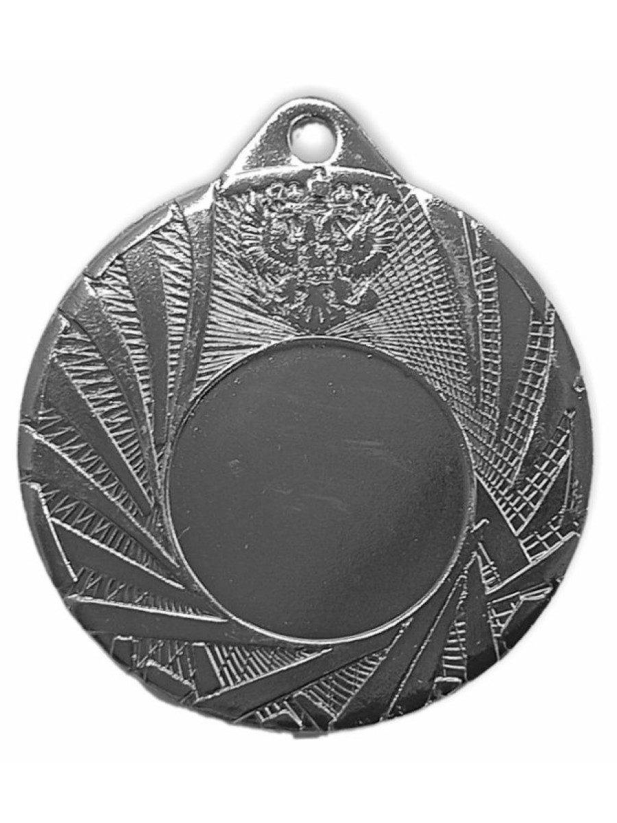 Диаметр 50 мм. Толщина медали 3 мм. Медаль изготовлена из металла (железа) методом штамповки. Лицевую сторону медали (аверс) можно укомплектовать эмблемой диаметром 25 мм. Обратную сторону медали (реверс) можно укомплектовать наклейкой или металлическим вкладышем диаметром 46 мм с текстом и рисунком. Имеется возможность укомплектовать медаль лентой. LD116/S