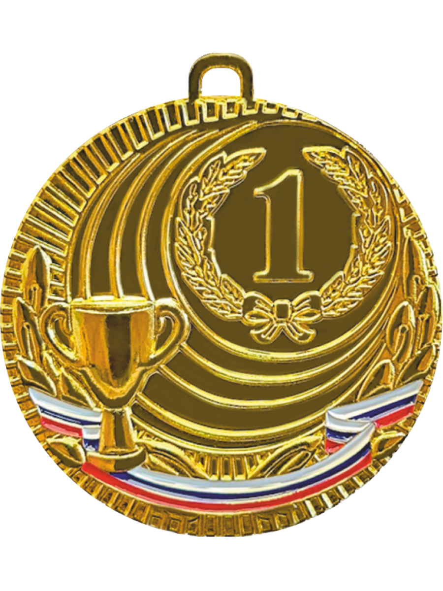 Комплект медалей состоит из 3 медалей в форме круга за 1, 2, 3 места. Медали изготовлены из недрагоценного материала (сплав металлов и цинка). Диаметр медалей 50 мм. Медаль за 1 место золотого цвета, на ее лицевой стороне расположено рельефное изображение цифры 1. Медаль за 2 место серебристого цвета, на ее лицевой стороне расположено рельефное изображение цифры 2. Медаль за 3 место бронзового цвета, на ее лицевой стороне расположено рельефное изображение цифры 3.