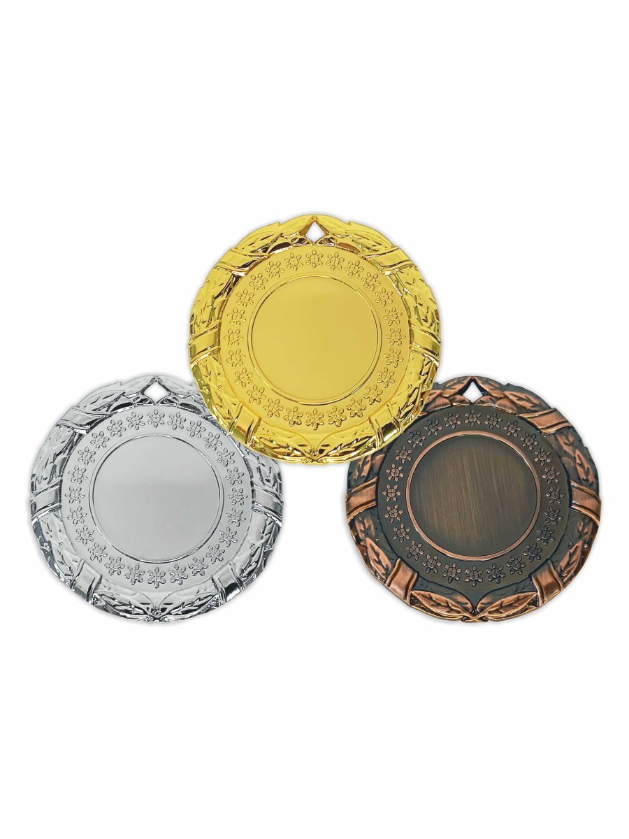 Комплект медалей состоит из 3 медалей в форме круга золото, серебро, бронза. Медали изготовлены из недрагоценного материала (сплав металлов и цинка). Диаметр медалей 50 мм. Медаль за 1 место золотого цвета, на ее лицевой стороне расположено рельефное место под вкладыш диаметром 25 мм. Медаль за 2 место серебристого цвета, на ее лицевой стороне расположено рельефное место под вкладыш диаметром 25 мм. Медаль за 3 место бронзового цвета, на ее лицевой стороне расположено рельефное место под вкладыш диаметром 25 мм.