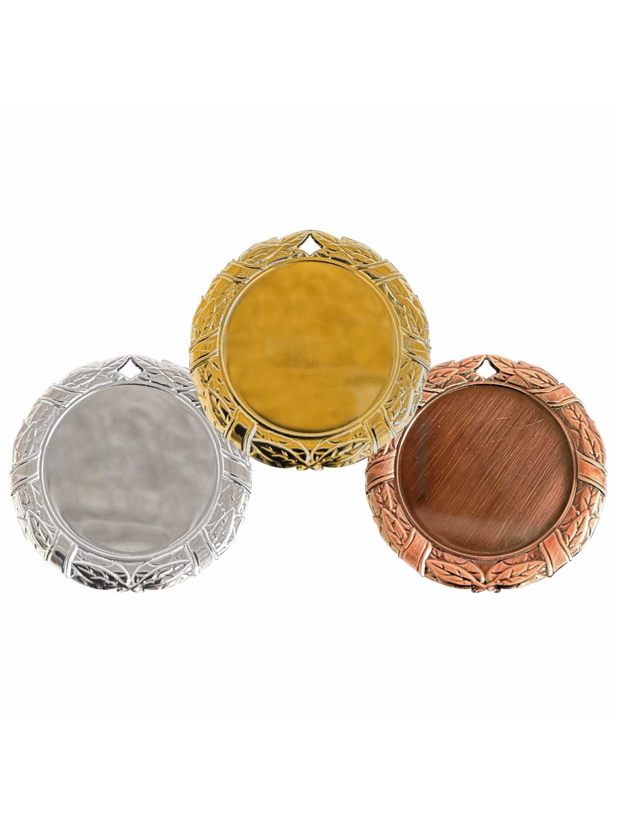 Комплект медалей состоит из 3 медалей в форме круга за 1, 2, 3 места. Медали изготовлены из недрагоценного материала (сплав металлов и цинка). Диаметр медалей 70 мм. Медаль за 1 место золотого цвета, на ее лицевой стороне расположено рельефное место под вкладыш диаметром 50 мм. Медаль за 2 место серебристого цвета, на ее лицевой стороне расположено рельефное место под вкладыш диаметром 50 мм. Медаль за 3 место бронзового цвета, на ее лицевой стороне расположено рельефное место под вкладыш диаметром 50 мм.
