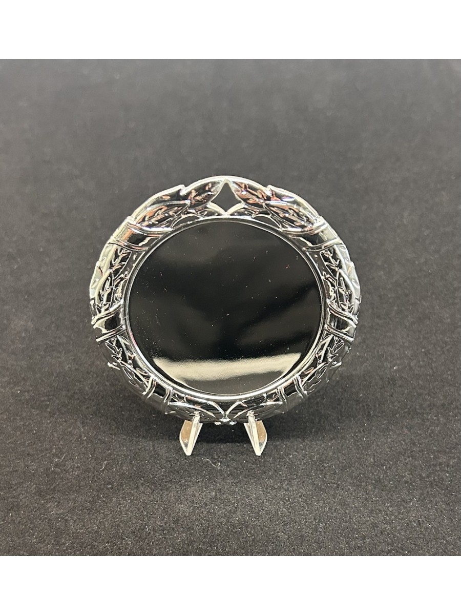 Реверс медали матовый, выполнен технологией пескоструйной обработки. На реверсе выделено место под вкладыш, поднятым полированным металлом в виде канта диаметром 50 мм, для размещения вставки диаметром 50 мм (другой размер вставки не допускается по причине использования стандартных вкладышей).