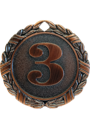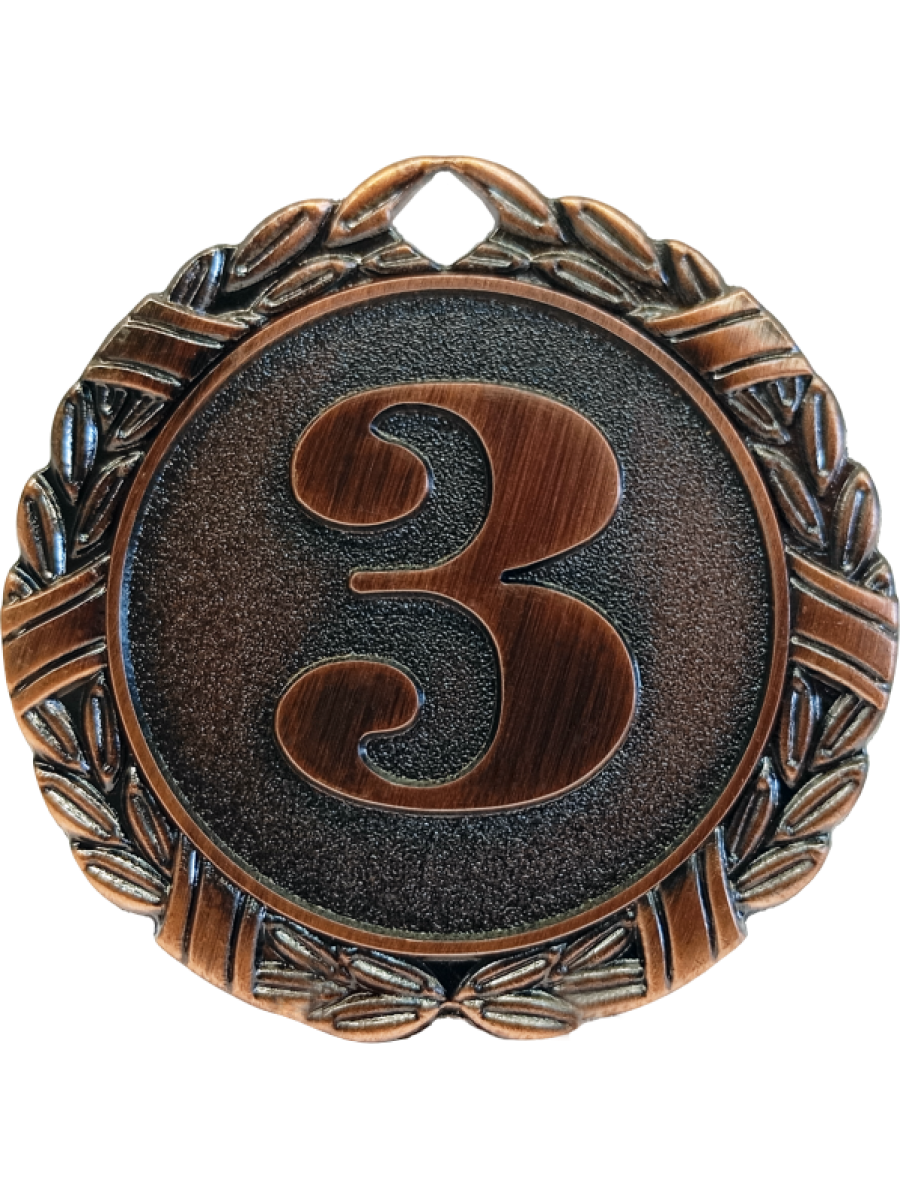 Комплект медалей состоит из 3 медалей в форме круга за 1, 2, 3 места. Медали изготовлены из недрагоценного материала (сплав металлов и цинка). Диаметр медалей 50 мм. Медаль за 1 место золотого цвета, на ее лицевой стороне расположено рельефное изображение цифры 1. Медаль за 2 место серебристого цвета, на ее лицевой стороне расположено рельефное изображение цифры 2. Медаль за 3 место бронзового цвета, на ее лицевой стороне расположено рельефное изображение цифры 3.