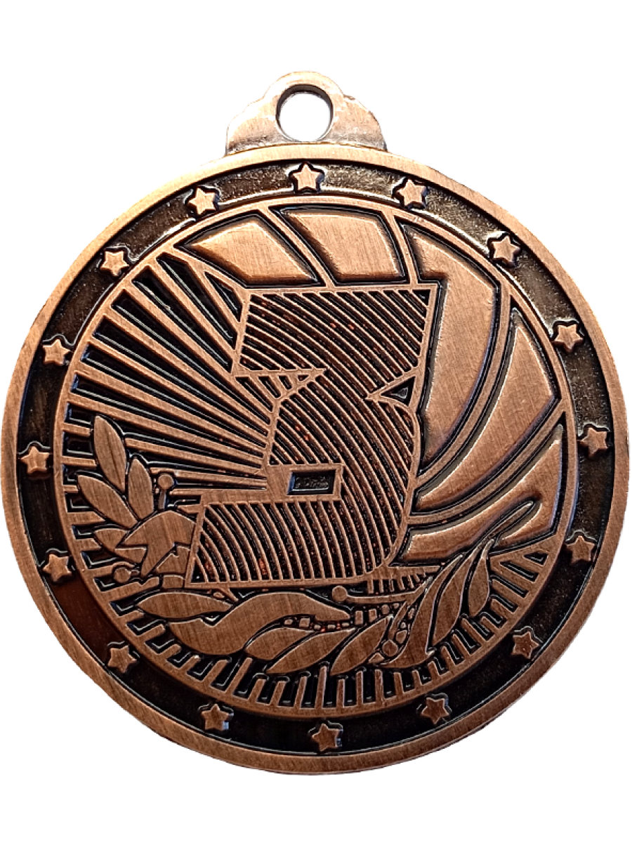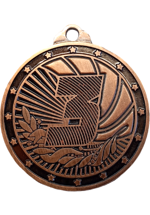 Комплект медалей состоит из 3 медалей в форме круга за 1, 2, 3 места. Медали изготовлены из недрагоценного материала (сплав металлов и цинка). Диаметр медалей 50 мм. Медаль за 1 место золотого цвета, на ее лицевой стороне расположено рельефное изображение цифры 1. Медаль за 2 место серебристого цвета, на ее лицевой стороне расположено рельефное изображение цифры 2. Медаль за 3 место бронзового цвета, на ее лицевой стороне расположено рельефное изображение цифры 3.